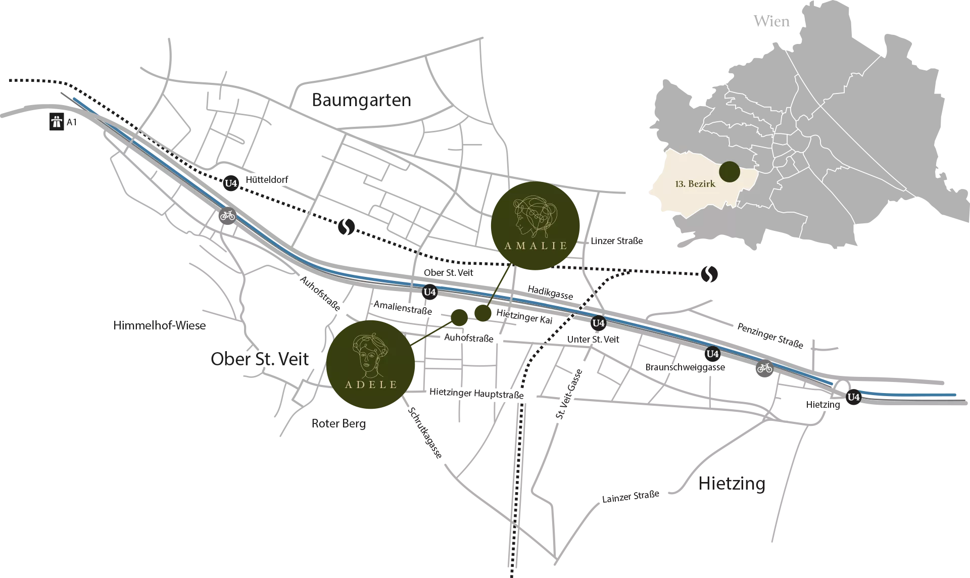 - Perfekte Verkehrsanbindung (Westausfahrt / U4-Station / Wienfluss-Radweg)